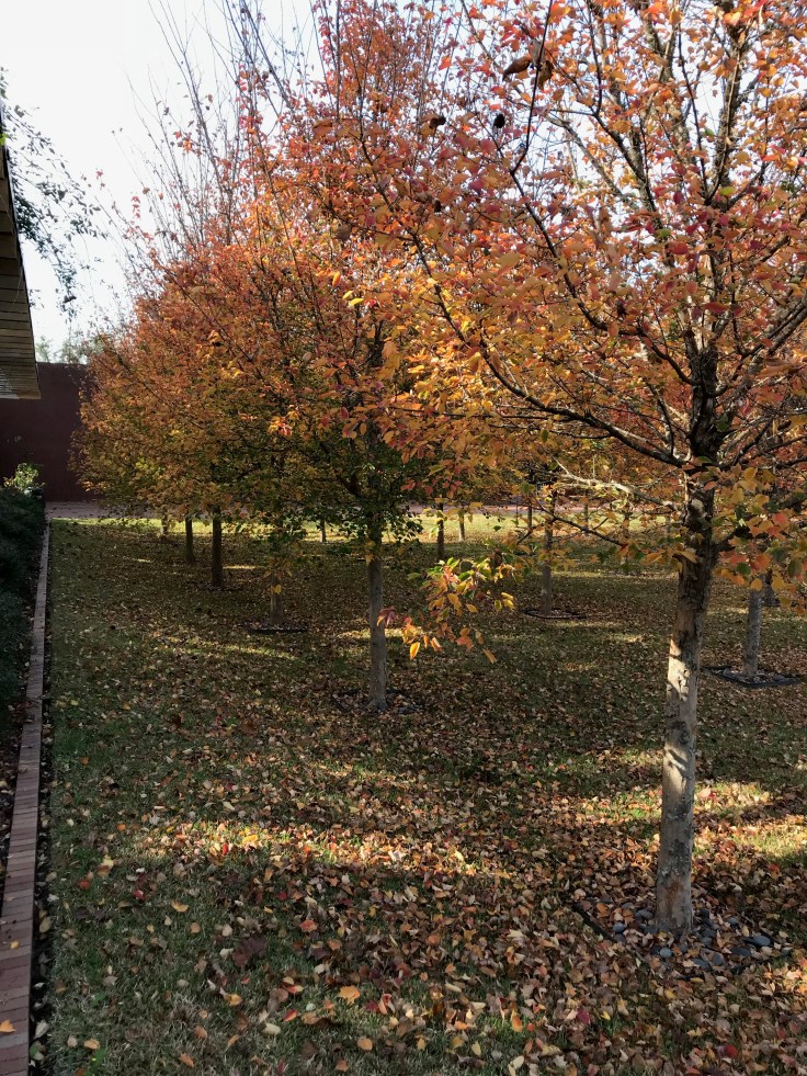 In summer the leaves become dry and begin to turn and flutter to the ground like letters for summer as cooler winds blow. Suddenly pumpkins appear on porches and suddenly bonfires dot the yards where leaves are piled to burn and branches gathered for fuel. Suddenly flowerbeds boast chrysanthemums in oranges, reds, and purples. Then somewhere a school bus motor starts up and school bells ring and children gather and suddenly, quite suddenly summer is gone.