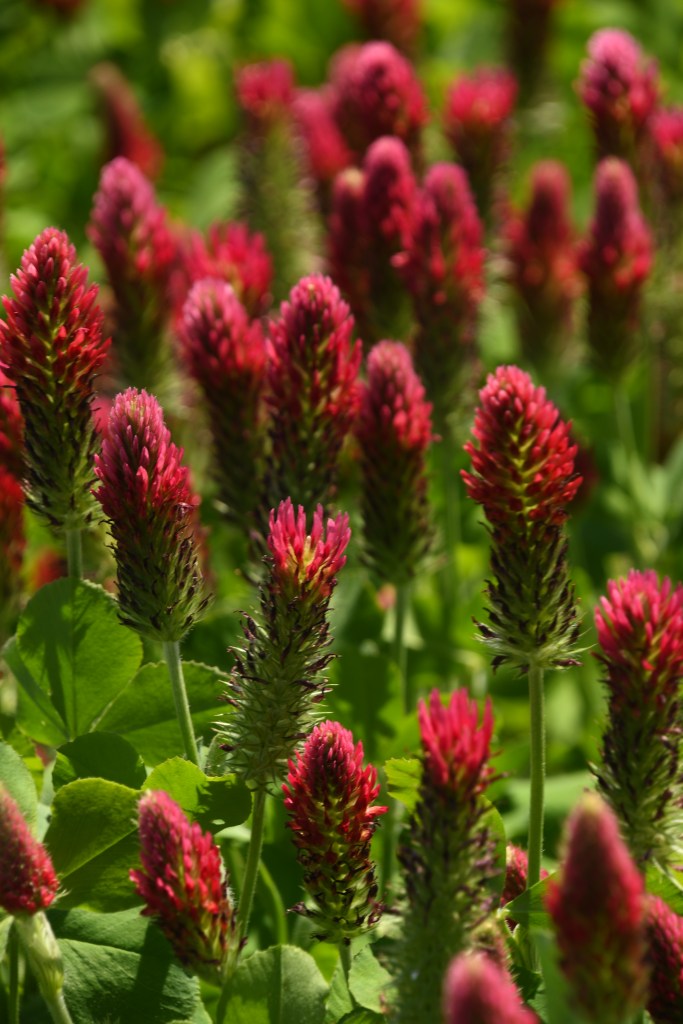 A flag flutters and whips in the wind spelling freedom with its red, white and blue. At the community garden someone had planted red clover to attract honey bees and butterflies.