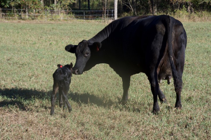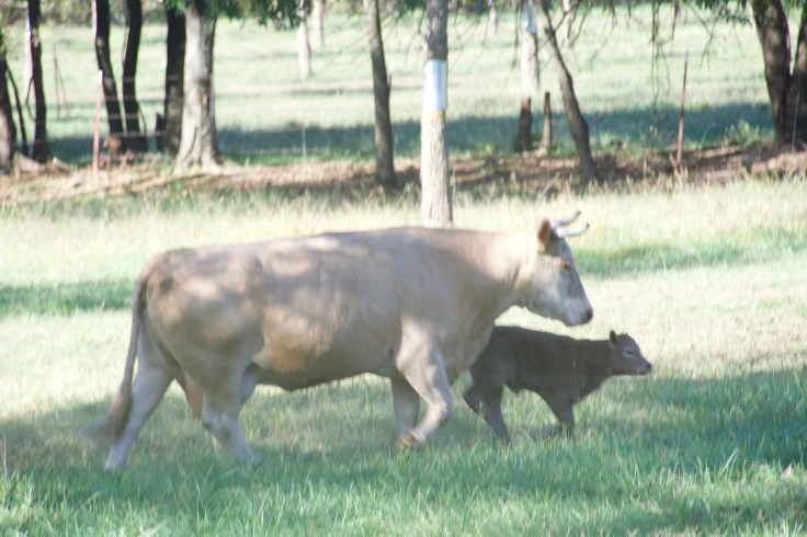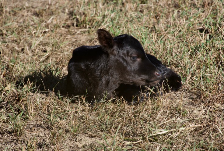 [ I am sad to report that little Gladys has died. We found her in the pasture early this morning and her mama quite miserable. Gladys was a pretty calf but must have had something wrong inside that affected her size and kept her from taking hold. Sadly, loss is a part of farm life.]