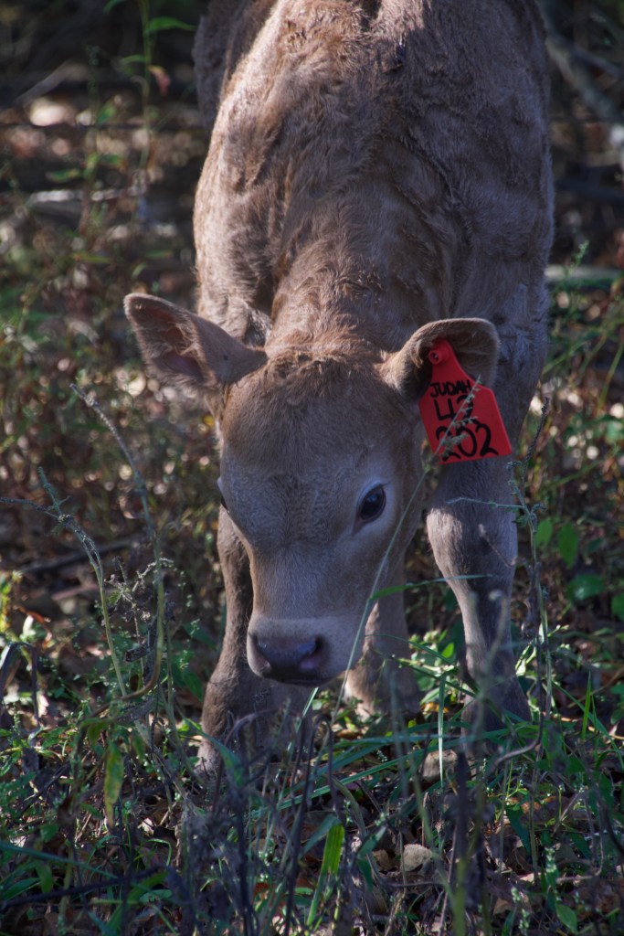As the other calves are born we will surely have some more bulls, which we won’t name as they will become steers for sale or freezer meat. Sometimes they get nicknames like Trouble and Whiteface and Rowdy. Our bull is named Judah.