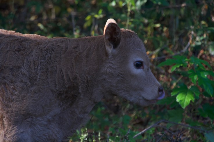 Rachel is tan and with some spots you might take her for a deer fawn. She is a pretty calf! The baby nurses until she is so full she can barely walk and then sleeps it off in the sunny pasture or a spot of shade near the woods. She will grow fast and be a fine Mama cow herself in a few years.