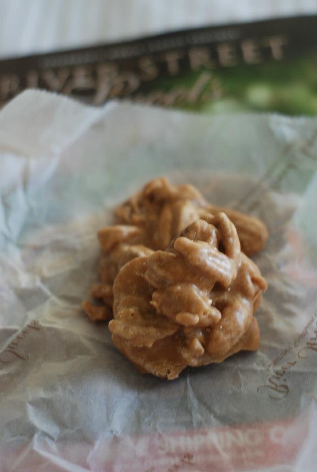 Remember pecan logs at Stuckey’s? They are yummy. I make some at Christmas. First mix and cook the fondant, cool, and stir till your arm is falling off. Knead into rolls—creamy white. Cook a dark caramel and pour over buttered pecans. When the caramel sets, cut into rectangles and roll each around the fondant. So good.