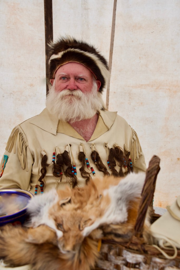 Here are a few more of the characters you can meet at the Mountain Man Redezvous. They come in their costumes and sit outside their tents in camp and tell stories, cook their meals, sell their wares, play instruments, teach their skills and share their jokes.