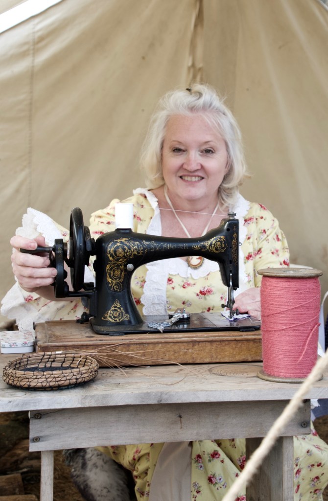 Children love the camping, and running and playing free and wild in the wilderness. They dress up too and engage in chores like whittling walking sticks, gathering firewood, cooking food and waiting on customers. One lady teaches sewing and shows how the sewing machine improved life for the frontier people.