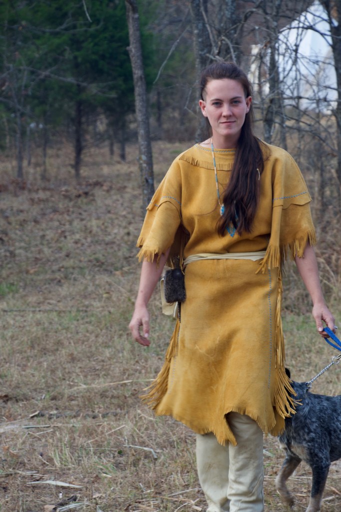 This young lady, my daughter Brenna, goes to Rendezvous every year and takes her dogs. She dresses as an Indian girl and loves visiting with the campers and learning about the frontier days.