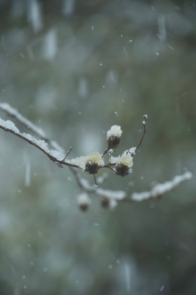 We wake one morning to find frost on the tree branches and the fences. Then comes the snow. The sun shines and we retreat to a warm place by the fire. Wind blows, rain falls all night and cold arrives.