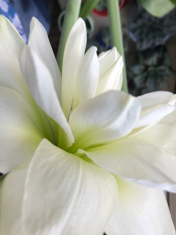 Amaryllis~~ red and white bloom in the warmth of the house while winter cold lingers and the new year begins. Our souls have taken to comfort food, fuzzy blankets and woodstove fires. Then a flower opens and it is spring.
