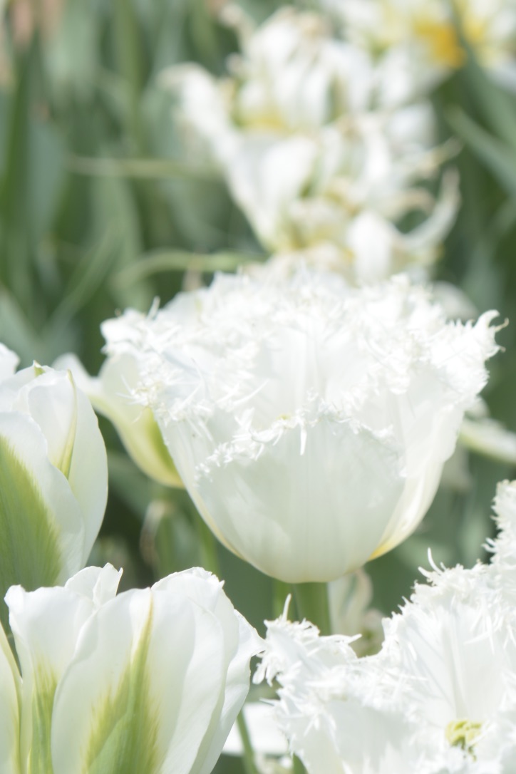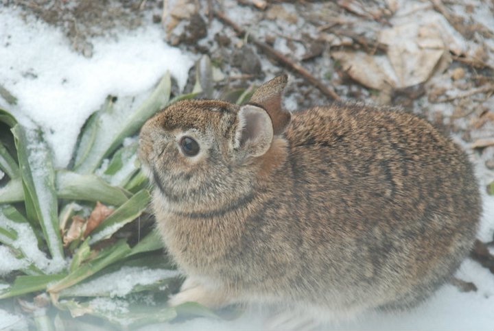 I saw a rabbit in the garden . The horses seemed just a bit bothered by the snowfall. Above the snow the treetops were black lace against the gray sky. Everything else was white .