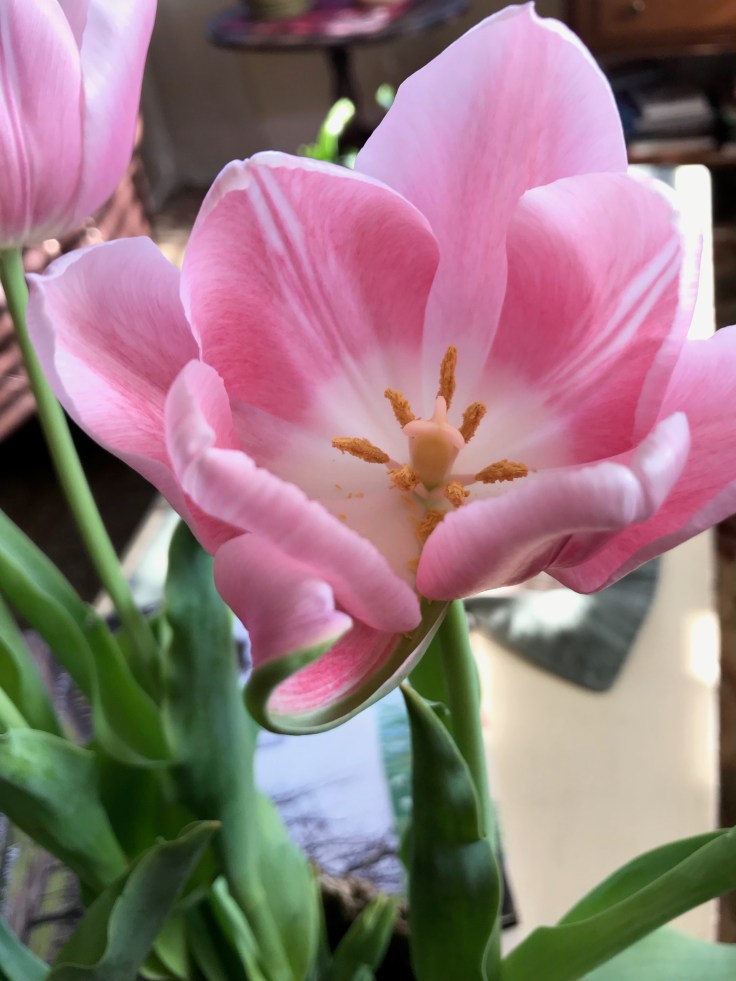 Inside and out flowers start their blooming. They eat up the sunshine and respond to the extra hours of light. Daffodils seem to appear from the wet ground as fast as the grass sprouts. Iris send up their spikes.