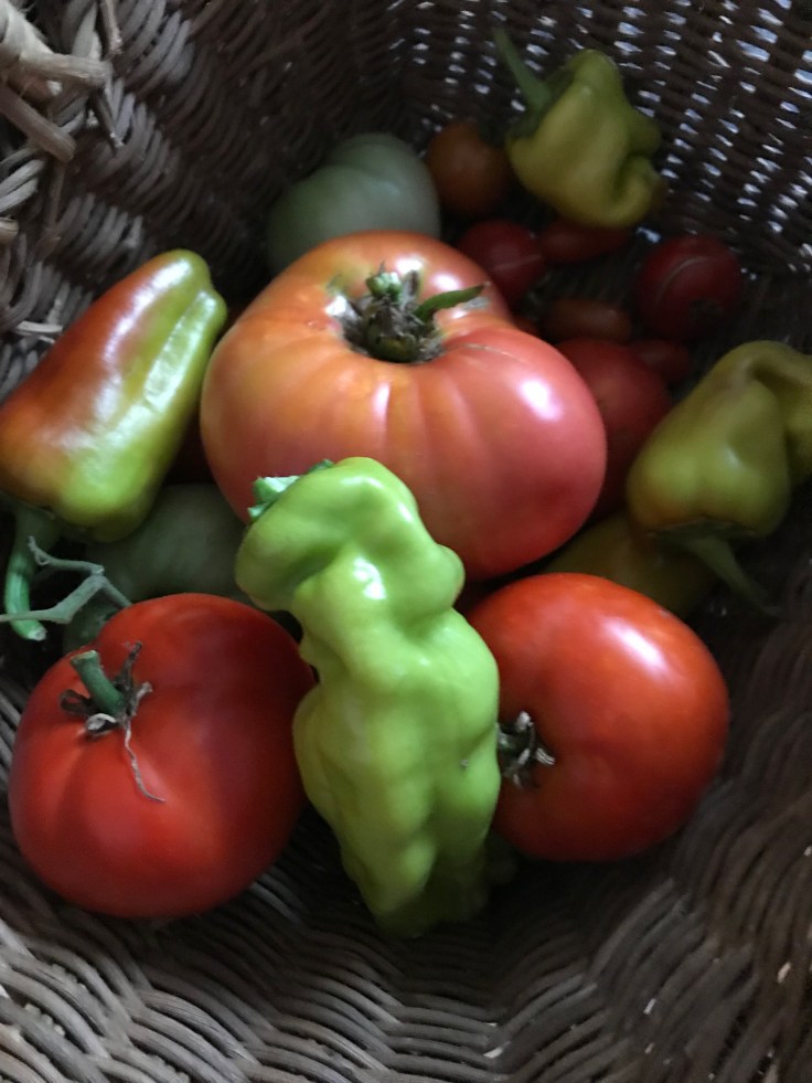 We soothe our dryness with ice creams, fresh peaches, cantaloupes and watermelon. The garden is full of weeds with nothing left to harvest but okra and hot peppers. For supper we slice vine-ripened tomatoes onto a white platter and sprinkle sparkly sugar on them.