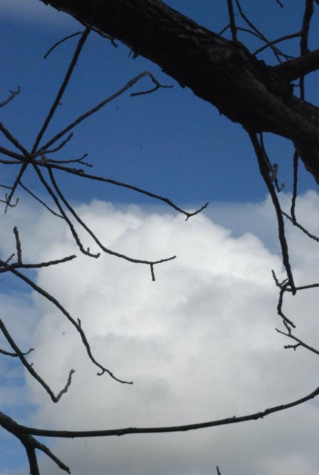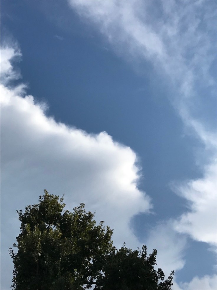 I see an old man here with a white beard and a hat. Or some may see Jesus with the crown of thorns. The sky–the sky–the wonderful sky always amazing me with its light and blue, its clouds and with weather rain and storm, snow, hail, lightning. The beautiful sun-filled sky, the pale blue welcome of spring, the heated yellow glow of summer, the cool brightness of autumn and the gray glare of winter, the sunrises and sunsets. The sky is an open book of poetry that the heart can read right well.
