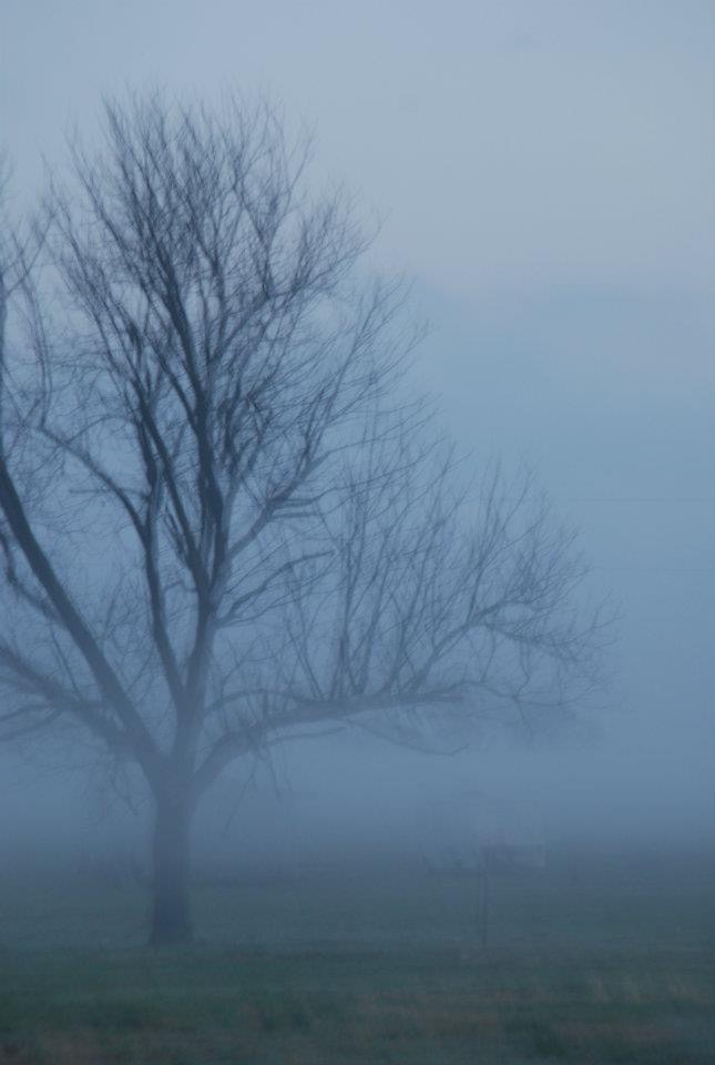 This morning fog robed every tree and bush in white. The mist rose from the surface of the pond and the grass was watered with a fine if cold film like the outside of a glass of ice water. But soon it was gone–burnt off by the light of morning. The sunlight rose over the eastern horizon and lit every molecule and erased every shadow.