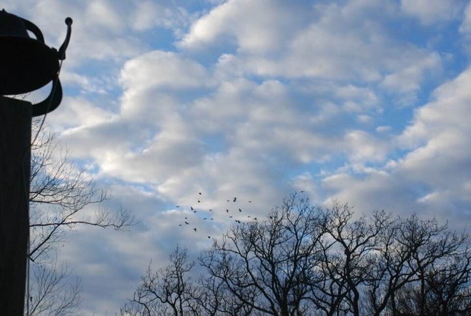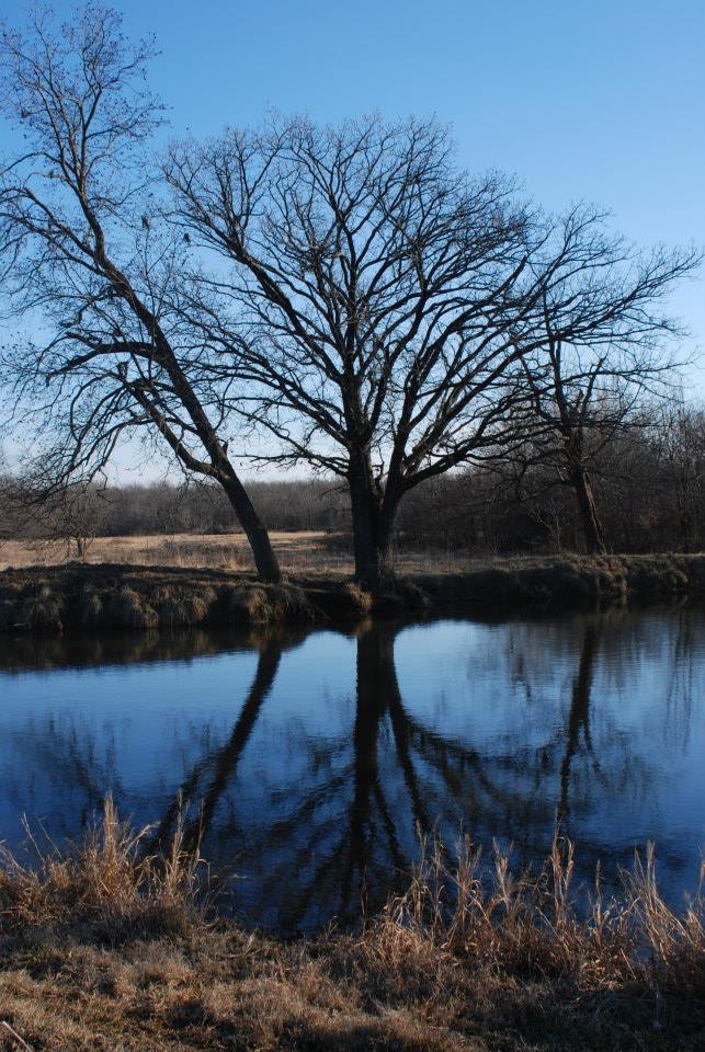 Soon the pond holds reflections of bare tree skeletons and sky scenes.The water should be such a clear blue but it is the replica of the heavens blue and bright with bumper car white clouds and birds on the wing. The cattails have dried and the wind blown out their seeds. The grass is browned and the leaves of the now-bare trees are nestled in the weeds and grasses.
