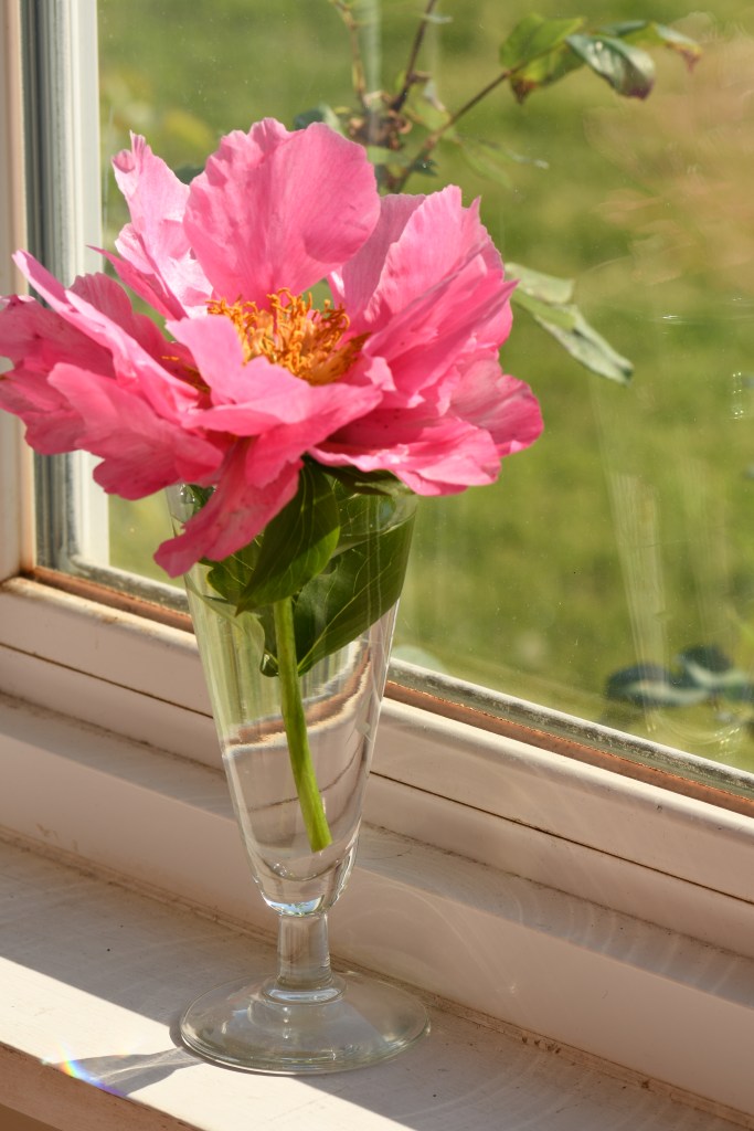 Pink, burgundy, white, and rose cut for a vase to decorate the windowsill or the supper table bring a sigh of gratitude and a smile to every winter weary face. Spring has come and with it the peonies.