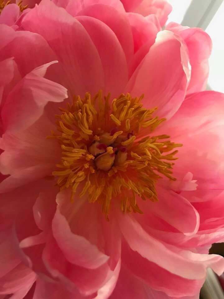 Hummingbirds come home for the summer and hover at the glass globes of feeders. Peonies show their ruffles like beginner ballerinas in pink tutus. Golden crowns top their petals attracting honey bees and ants. Their nectar must be sweet.