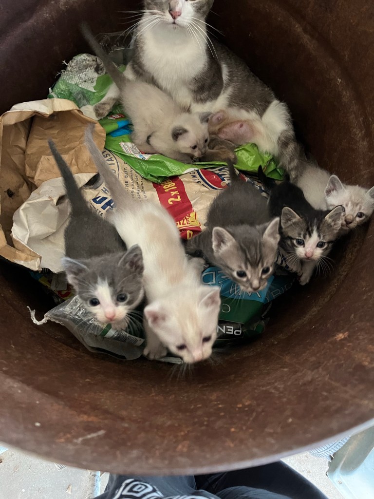 Our barn cat is a beautiful gray and white. She gave us six pretty kittens born in a barrel. They are six weeks old now and ready for new homes. One of the cutest a gray with blue eyes has been claimed and taken home already. Four more are spoken for. The second mama cat birth to four long-haired kitties in the garage. They are the friendliest.