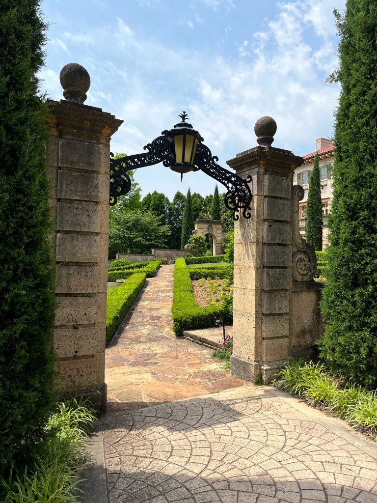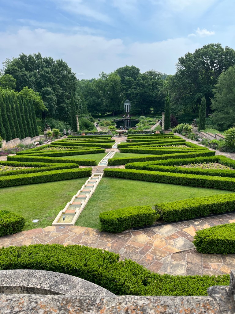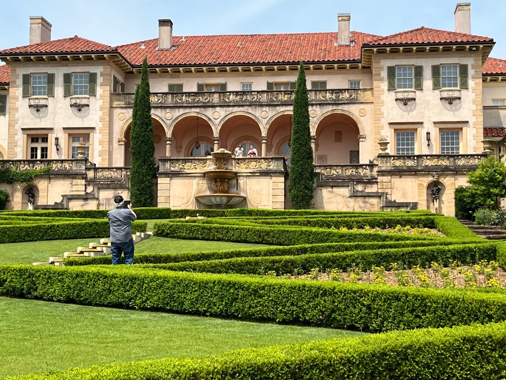 The gardens are elaborate and full of flowers and water fountains. There is a gazebo at the eastern end from the mansion. I like to imagine the people there. Ladies in fine dresses and couples having picnic lunches in the shade, children running up and down the stairs and splashing in the fountains and pools. I imagine gardeners working and artists standing at easels practicing their painting. I imagine carriages pulled by horses bringing guests to visit.