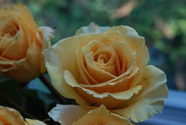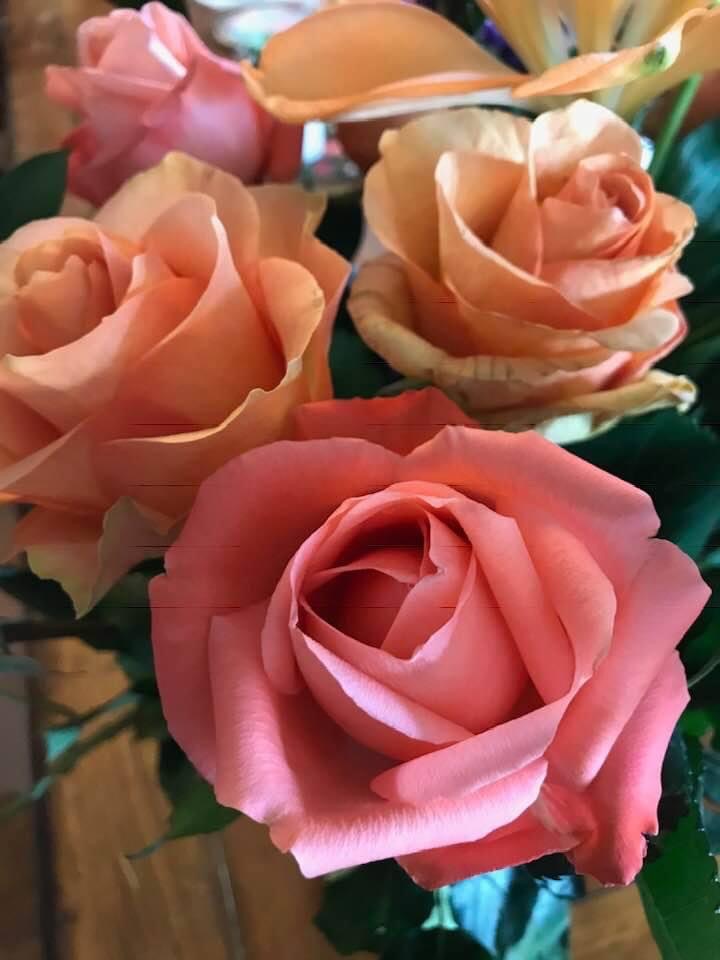 The roses bloom all sorts and all colors, pink, all shades orange, and white, red, and purple. I even have a pale yellow one outside my bedroom window. They are like music for the eyes! Long stems or short stems with or without thorns. The petals are like fine velveteen. Mix a few blooms with greenery and some sprigs of baby’s breath for a delightful bouquet. Which color is your favorite?