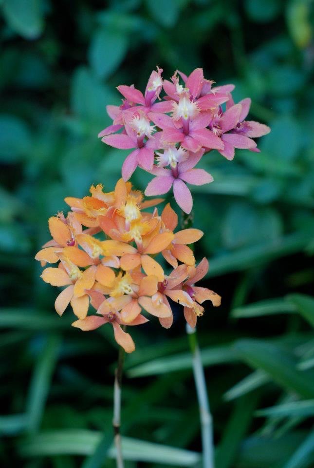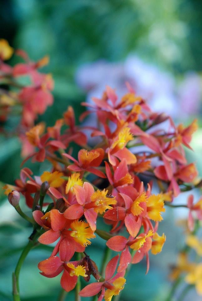 Every color, even green, the orchid family is a collection of rare beauties. You will find oranges, yellows, pinks and purples, tans, whites, and reds. Their shapes like birds in flight and many like angels with arms outspread. I love the orchids though they are hard to grow. I keep trying and some do pretty well. I photographed these at the Crystal Bridge gardens annual orchid show in Oklahoma City. It was awesome.