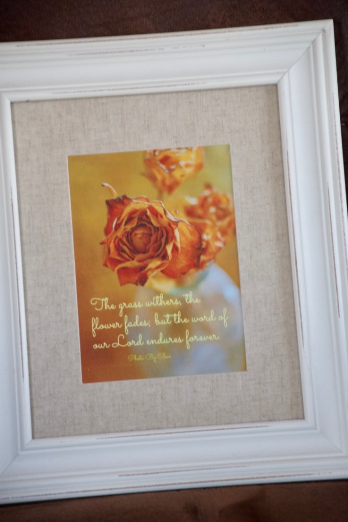 Being a writer I tend to use words as art. These are what I consider meaningful and beautiful words. Like the Bible verse below The grass withers , the flower fades, but the Word of our Lord endures forever. As I grow older and attend more funerals; it is good to know that it is the way life on earth is framed by God and that His words–H ppl s promises will never fail us.