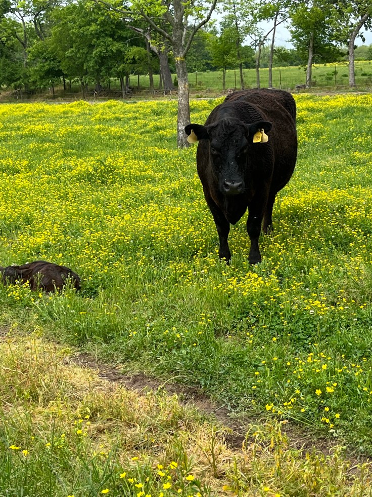 Our eight Mama cows had a busy summer tending new calves. The calves weight about 35 to 50 pounds when they are born and Ron keeps his eye on them. Their mothers tend to hide them while they graze, so we have to be careful not to run over one in the tall grass. They are so camouflaged–although they are black you cannot see them easily. Now they romp and play in the back pasture, butting heads and kicking up their heels.